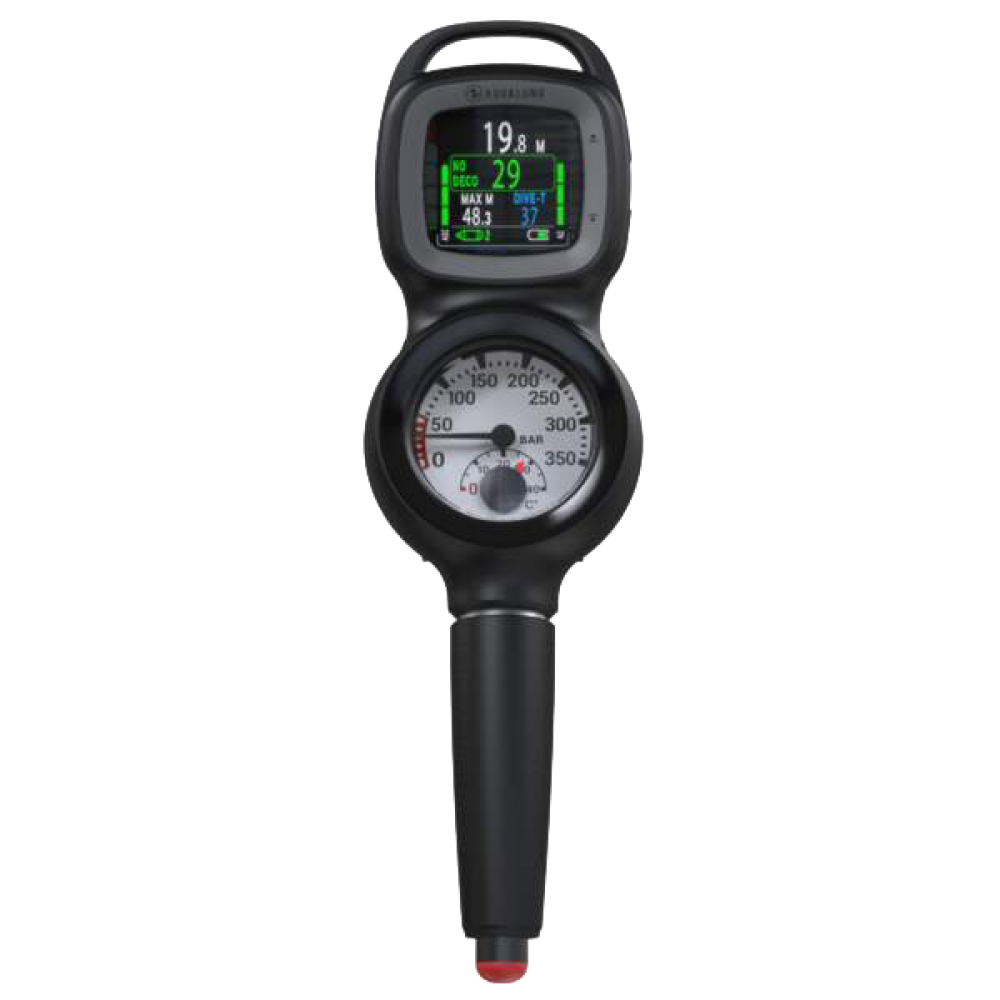 The Aqua Lung Pressure Gauge delivers both remaining air pressure and temperature in one easy-to-read display.