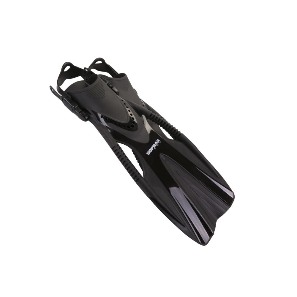 POWER are professional multi-purpose fins, with quickadjusting and quick-release buckles and anatomic soft foot pocket made of thermoplastic and rubber with different thickness of sole, suitable for use with