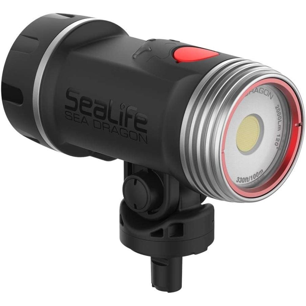 The Sea Dragon 2000F (The “F” stands for Flood beam) features a 120° topside beam angle, 90° underwater and features three power levels at 100%, 50% and 25% of the 2000 lumen output. The wide beam angle is ideal to pair with compact action cameras, as it ensures the entire area being recorded is flooded with light. Like all SeaLife Sea Dragon lights, the performance and lumen performance is true and tested.