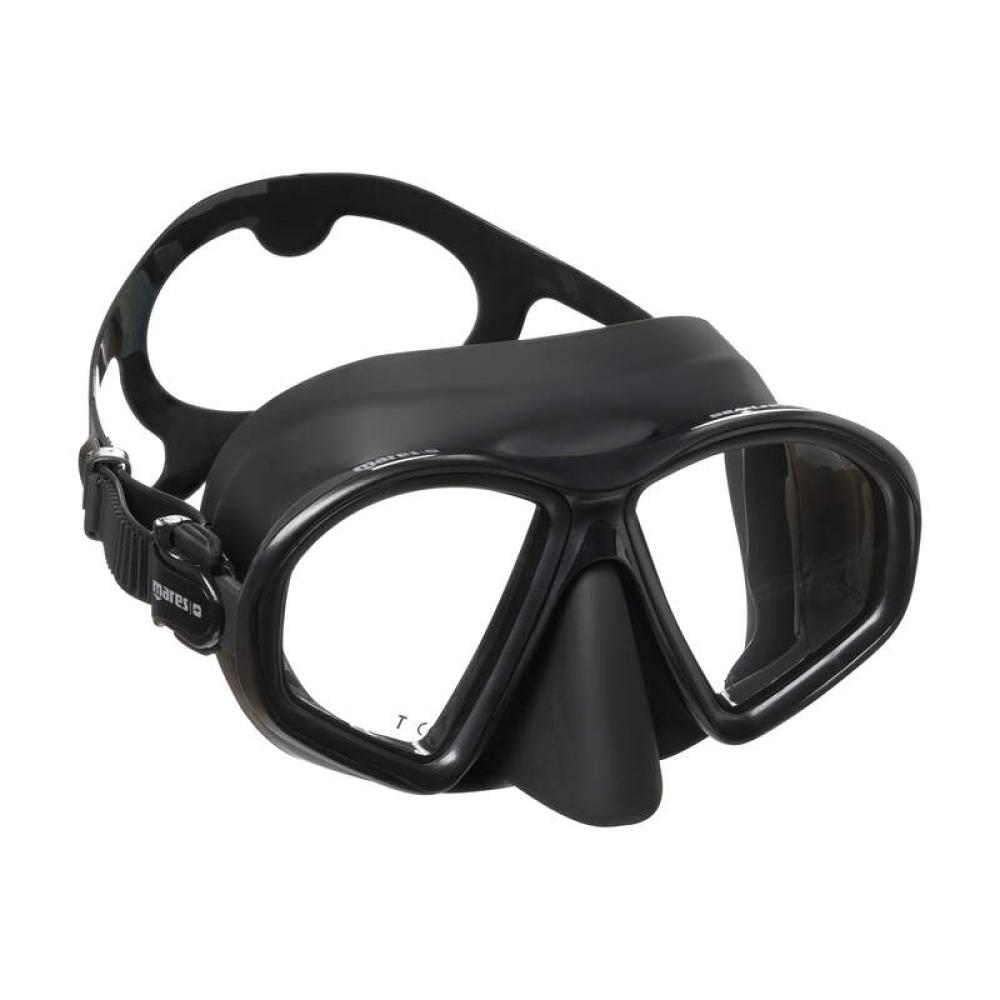 The internal volume of the mask is minimal, and the distance between lens and eye is reduced. The buckles are low profile and are positioned on the skirt. The mask guarantees a wide field of view.