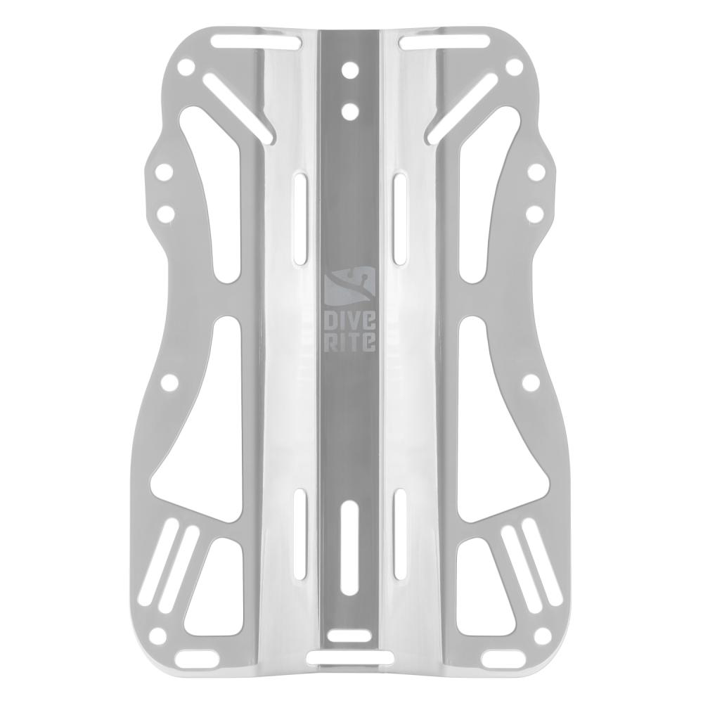 Our laser-cut, CNC deburred and electropolished lite backplate was designed with rounded corners to prevent pressure points and snagging. Built-in holes for bungee allow divers to sidemount stage bottles without the need for modification and slots for cam bands make it easy to carry a single tank with no need for an adapter. At 2 1/2 pounds, the lite backplate is perfect for travel or anywhere you are trying to save weight.